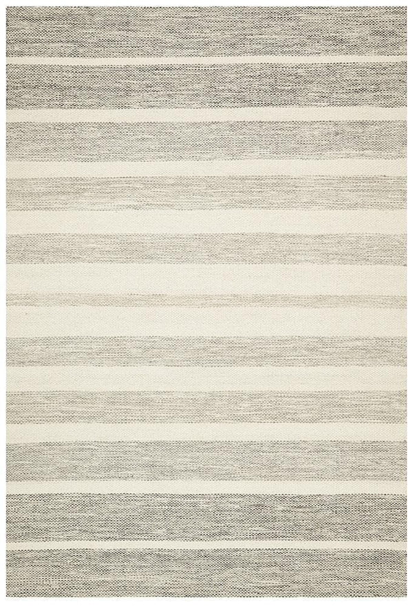 Soft grey stripes run across a natural base, with a gentle, woven texture that adds depth up close. The overall feel is clean and simple—perfect if you want your rug to pull the room together without stealing the spotlight.