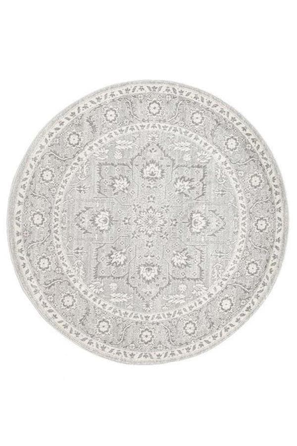 Transitional Flower Silver Round Rug - Rugs Plus Online