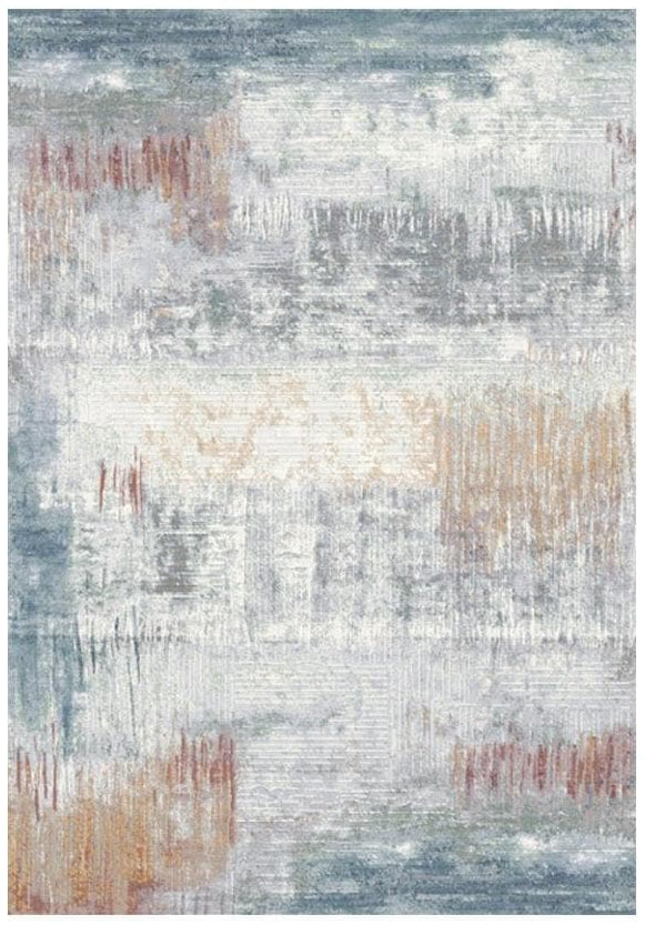 This rug has an art-like, brushed pattern that feels contemporary but not too loud. The mix of cool and warm tones helps it sit beautifully in modern, coastal, and minimalist homes—perfect when you want a statement piece that still feels easy to live with.