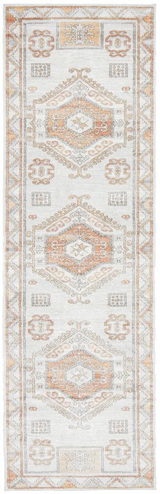 The softest hues flow through this gorgeous Aztec design. Different shades of warm peach and natural pop out of the cool white and silver background. Power loomed with a polypropylene pile, this rug is non-shed and easy care. These rugs offer style, versatility and are available in rectangles, rounds, and runners in a large variety of sizes.