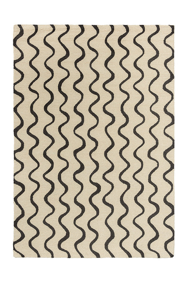 Streams flow up and down this large-scale rug design. A perfect coordinate for homes. Why have a stripe when you can have a ribbon? Whether you're styling a cozy living room or adding texture to a sleek, minimalist space, this rug brings a playful, yet sophisticated touch to any room. The subtle, undulating pattern effortlessly enhances the atmosphere, offering a perfect balance of warmth and modern design. Crafted from luxurious pure new wool, it's as soft to the touch as it is visually striking, ensuring lasting comfort.